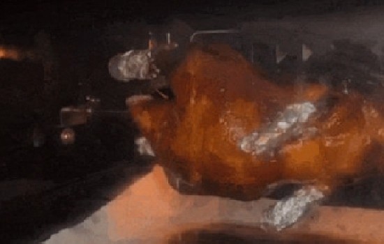 (3)在鸭皮上划几刀,涂上白糖,放入烤箱烤至金黄色。